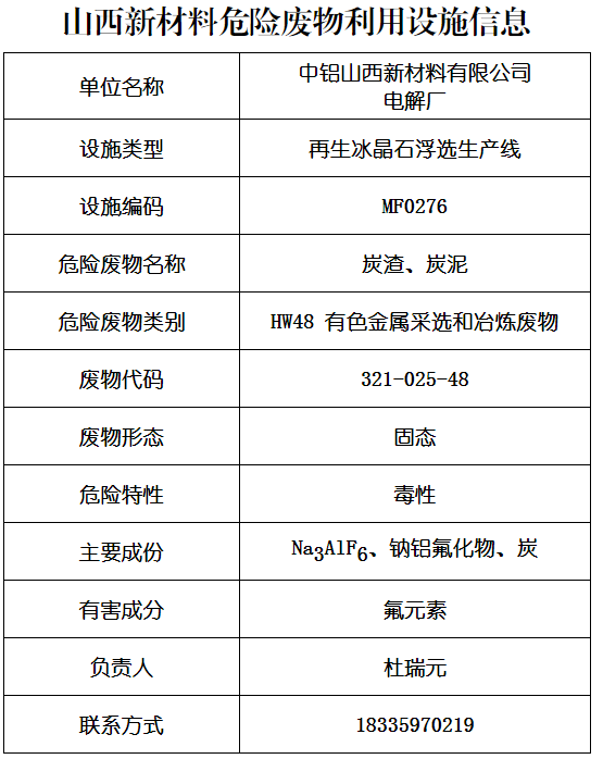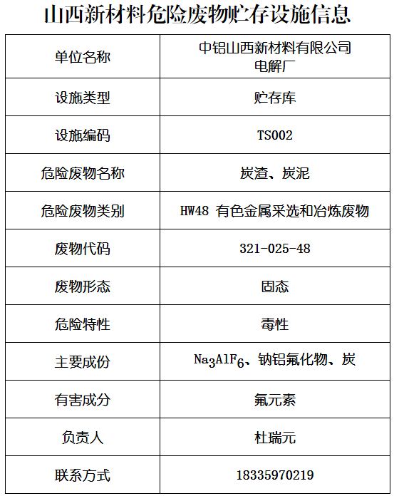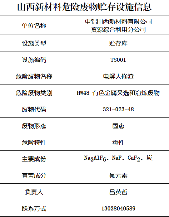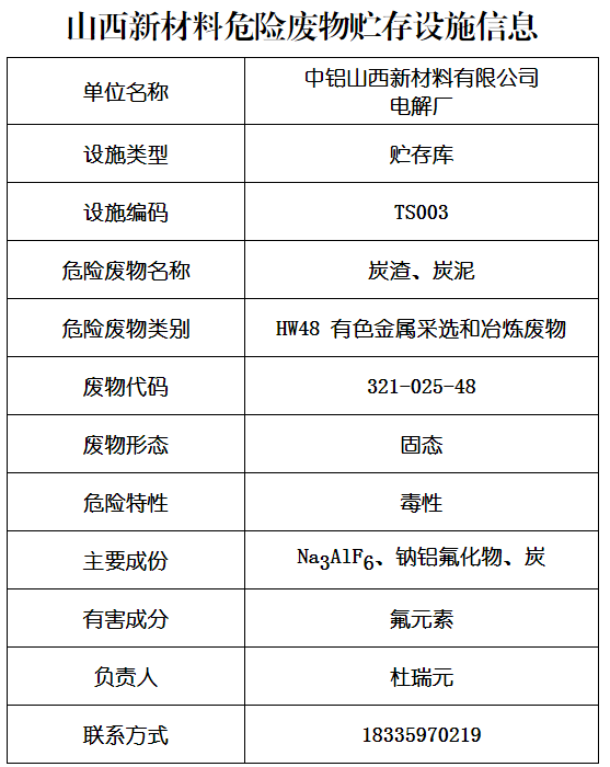 山西新材料危险废物贮存(利用)信息公开