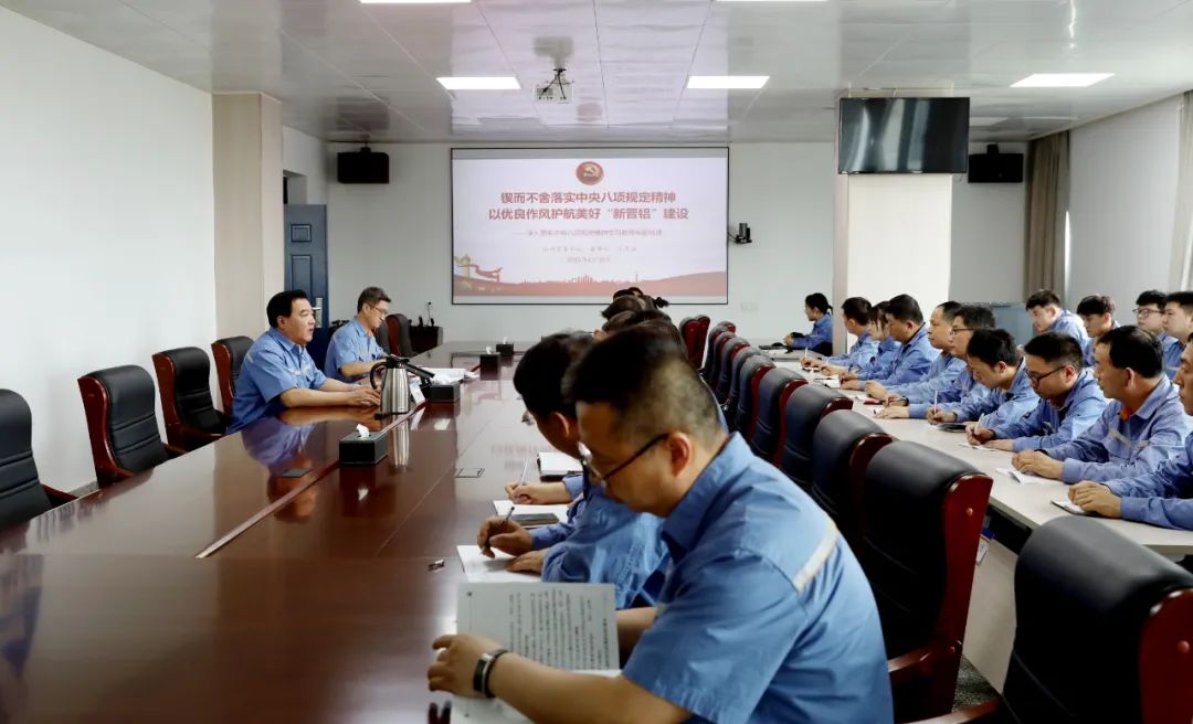 王辛成指出,要深刻汲取违反中央八项规定及其实施细则精神的教训,重点解决违规收送名贵特产和礼品礼金、违规吃喝、违规用车、违规大操大办等问题,引导党员干部从思想上正本清源,时刻保持清醒头脑,筑牢廉洁防线。要锲而不舍落实中央八项规定精神,深学细悟筑牢思想根基,深查实改实现标本兼治,改进作风推动企业发展,引导党员干部在推进管理改革、全面落实“四化”转型战略、强化成本“两最”管理、推动100万吨氧化铝节能增效升级改造项目建设等重点工作中,以身作则、率先垂范,始终保持“作风建设永远在路上”的清醒和坚定,自觉做加强作风建设的表率和标杆,进一步推进学习教育走深走实,以优良作风为美好“新晋铝”高质量发展保驾护航。
